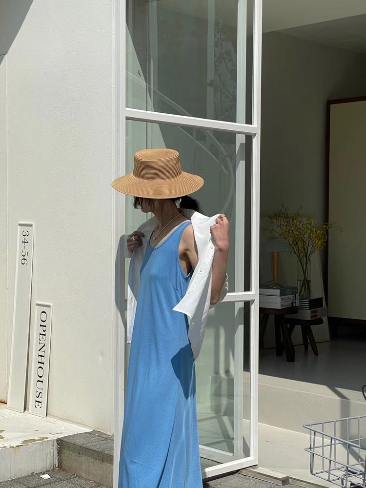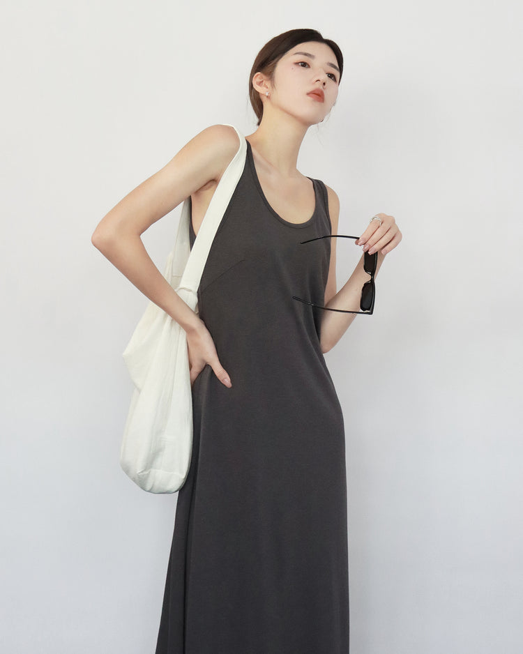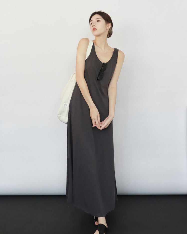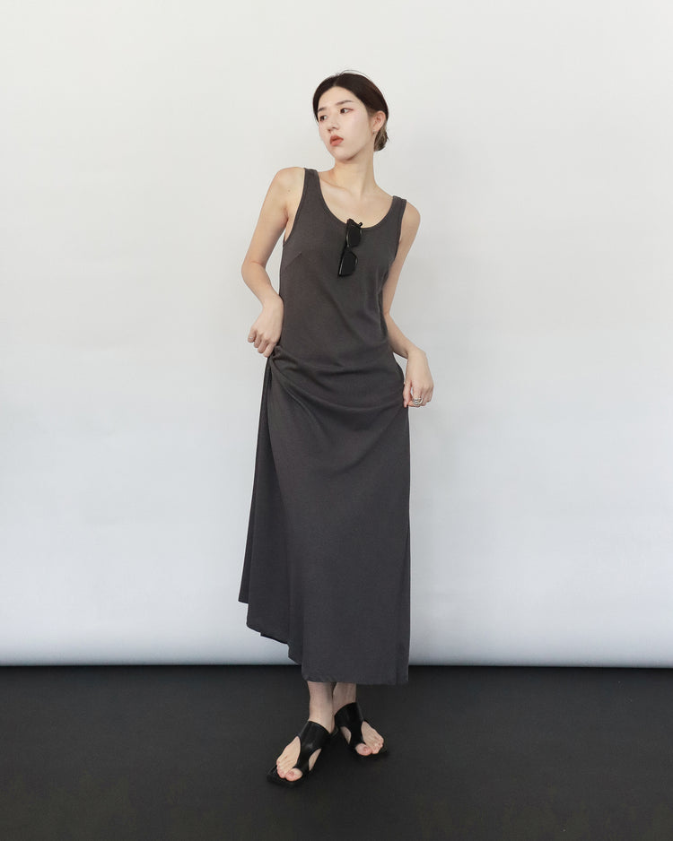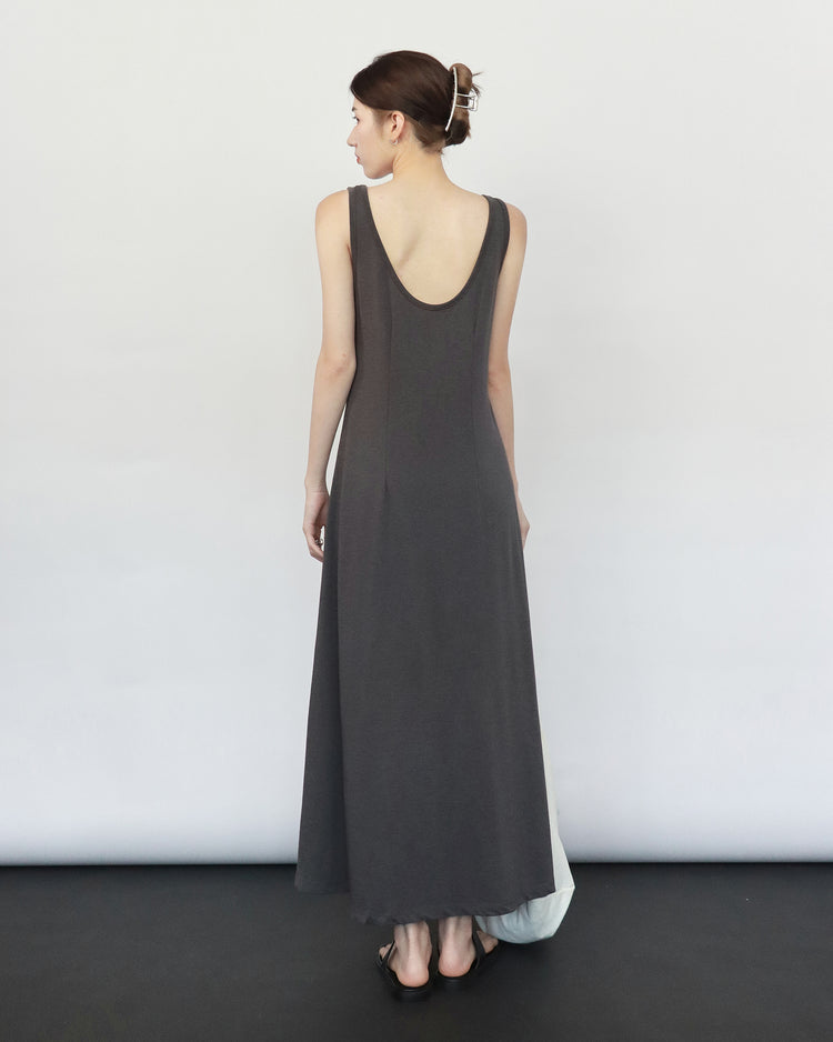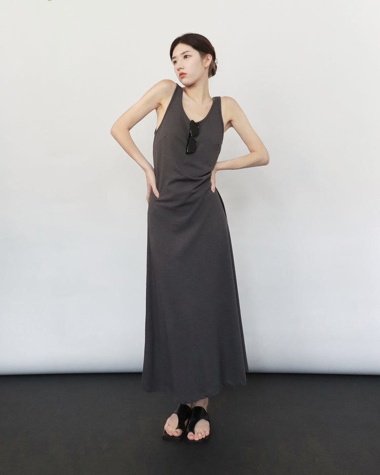 (現)輕薄露背垂感連身裙