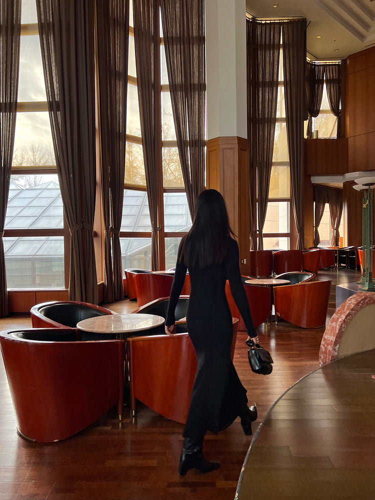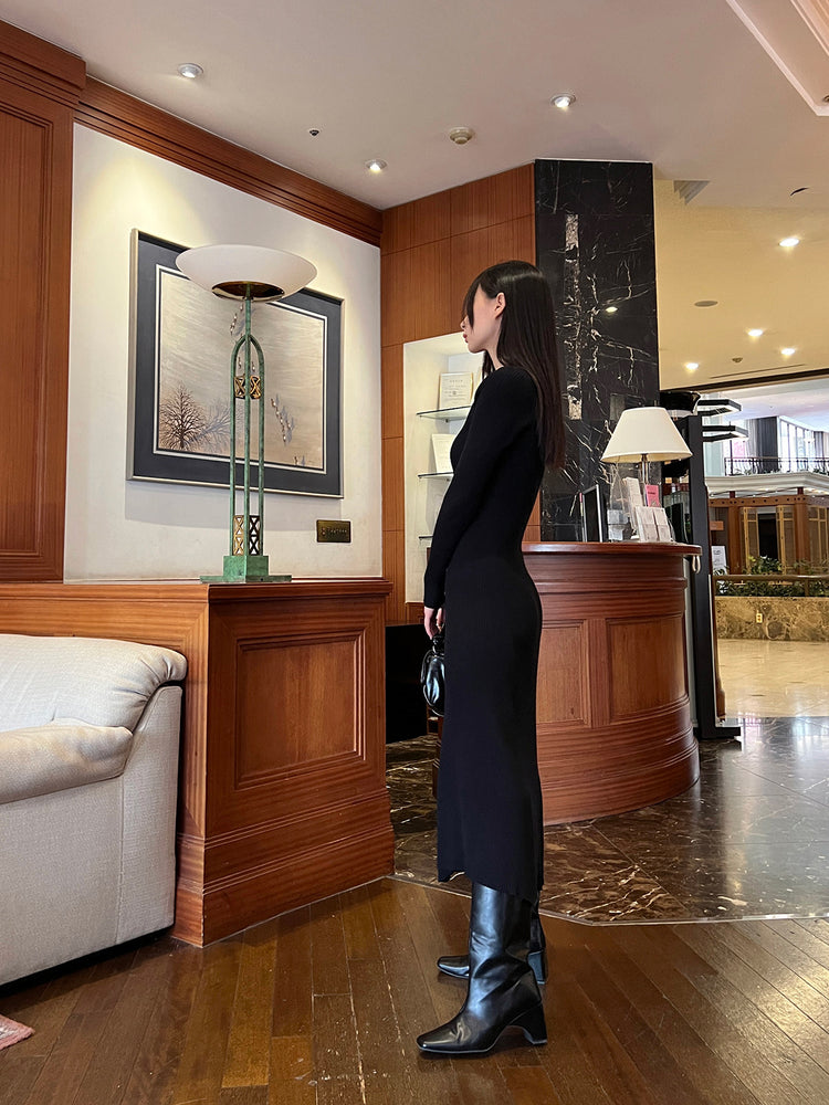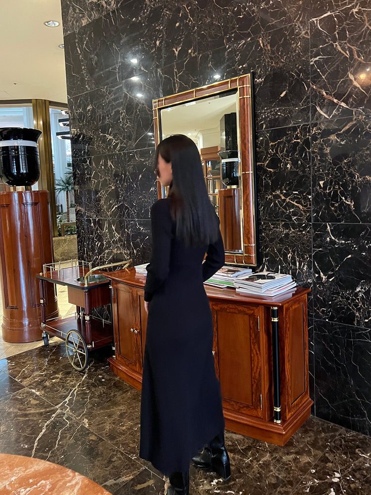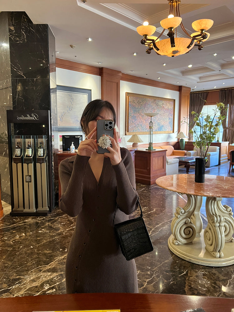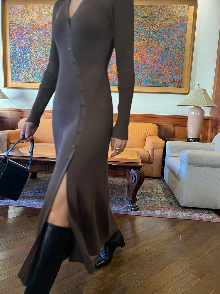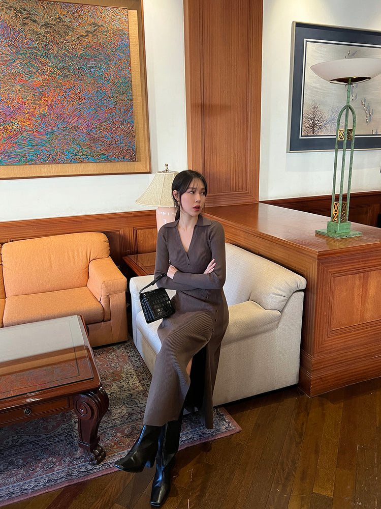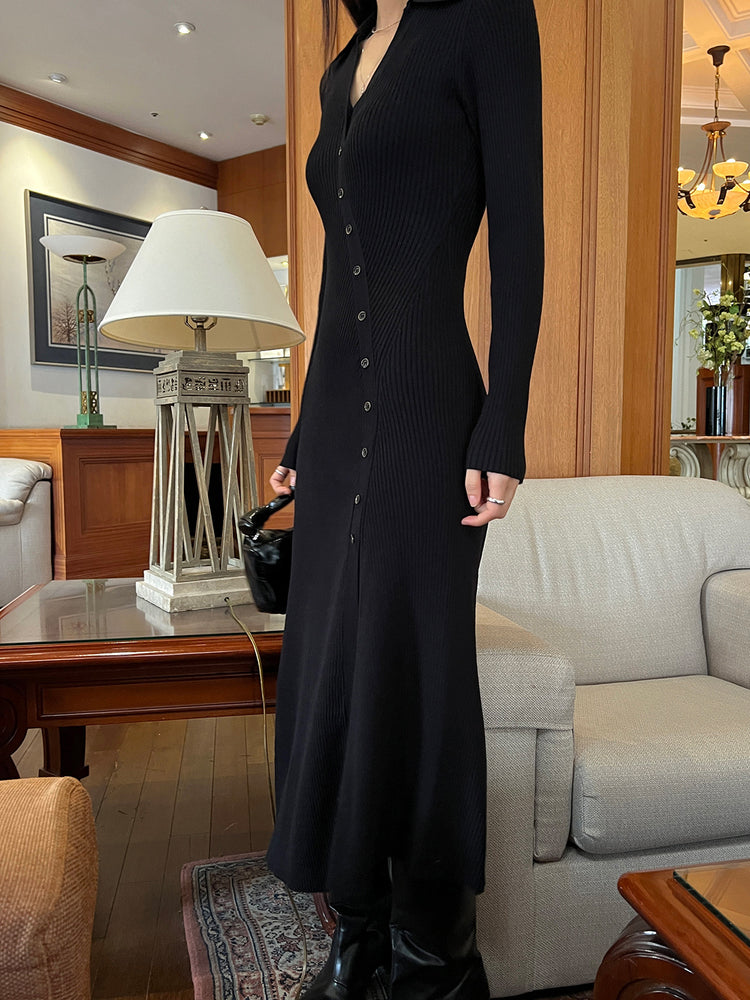 高質側開叉弧線排鈕連身裙