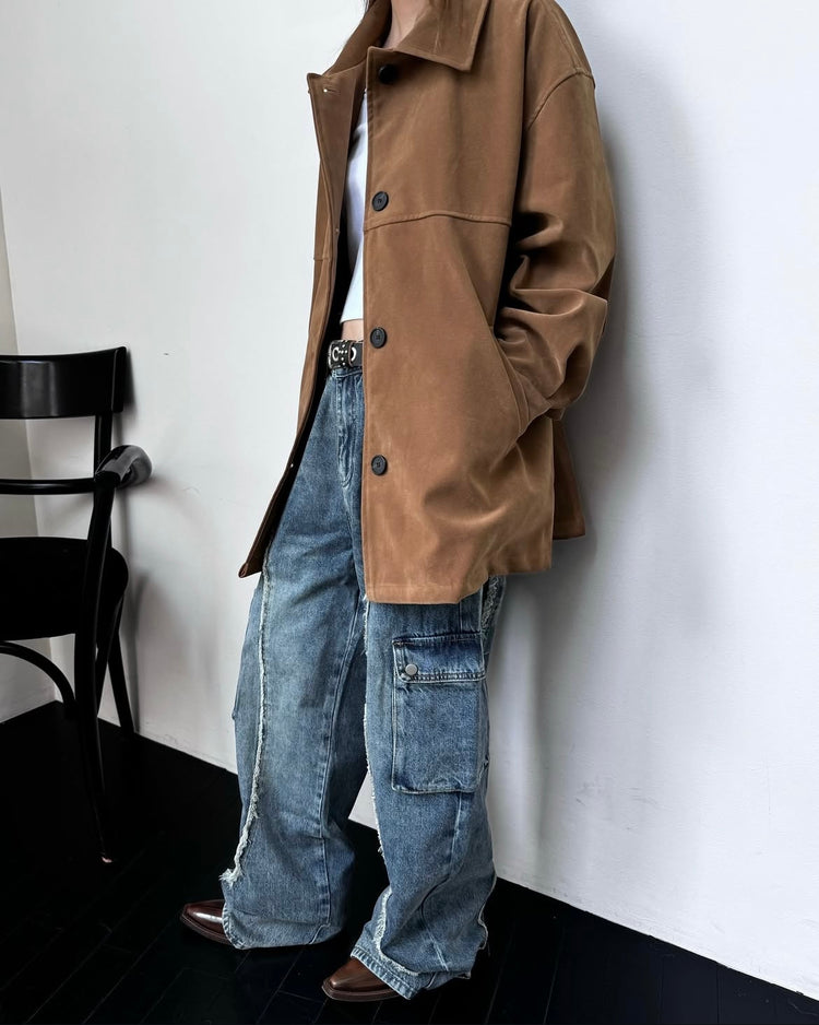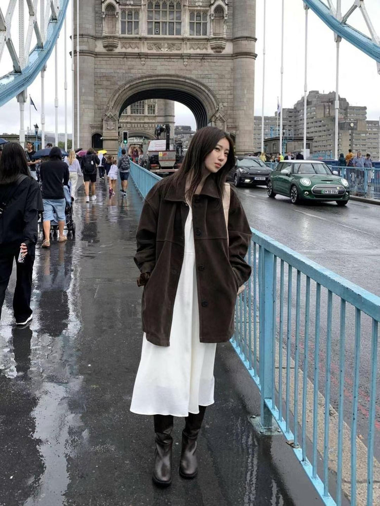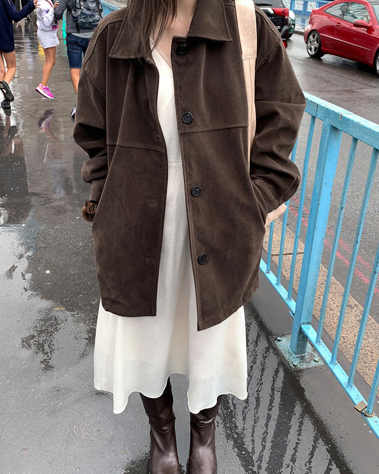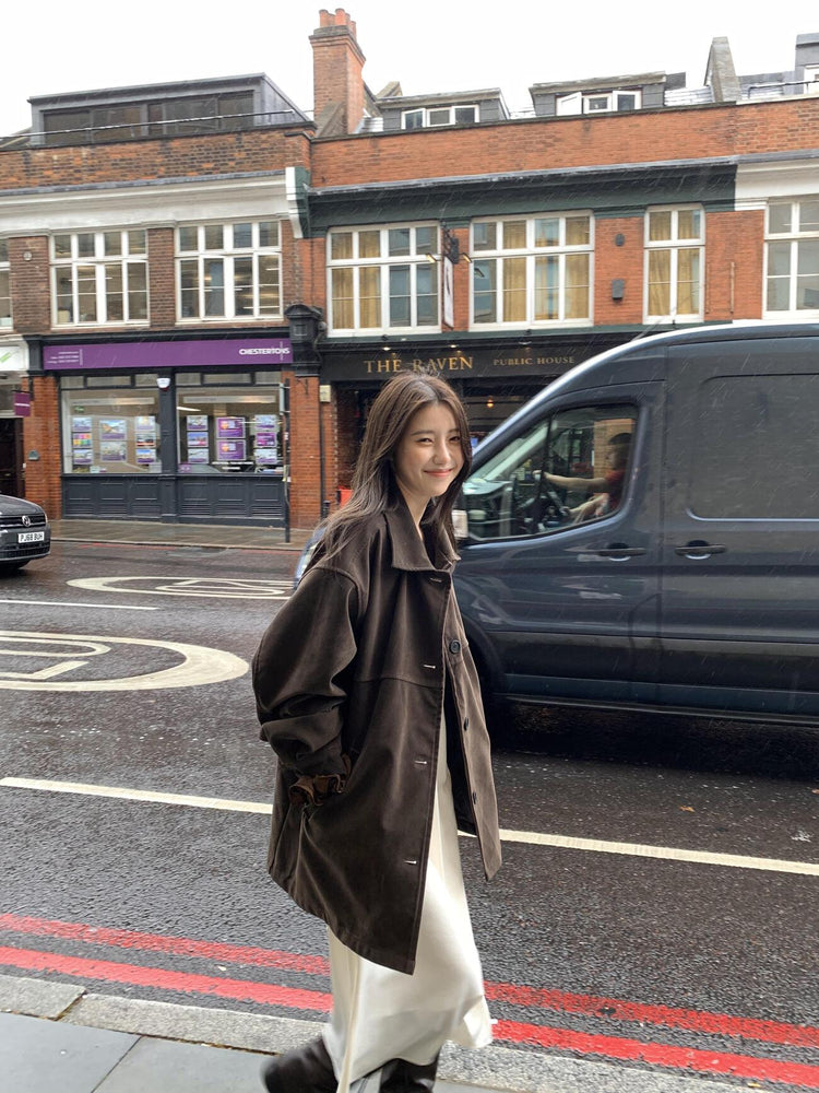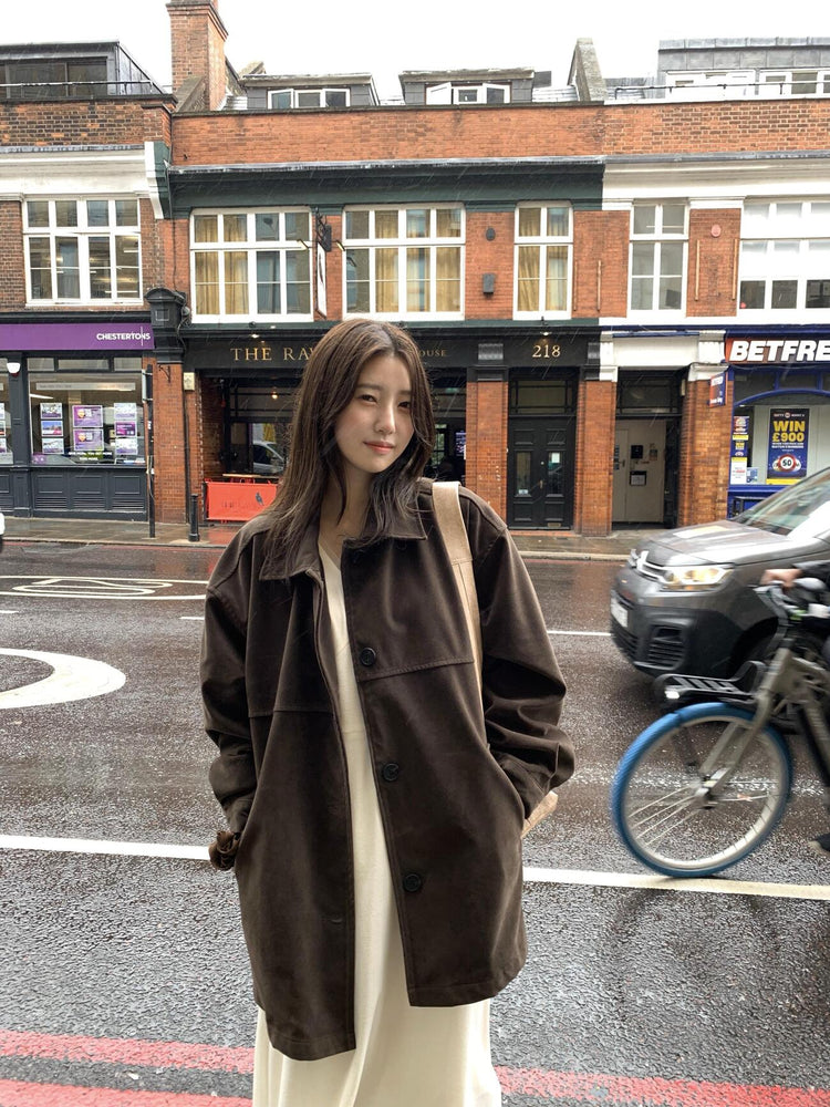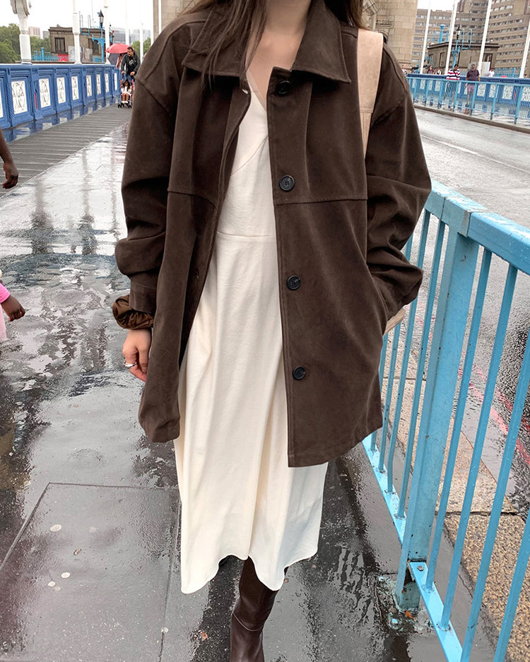 高質壓線細節麂皮中長外套