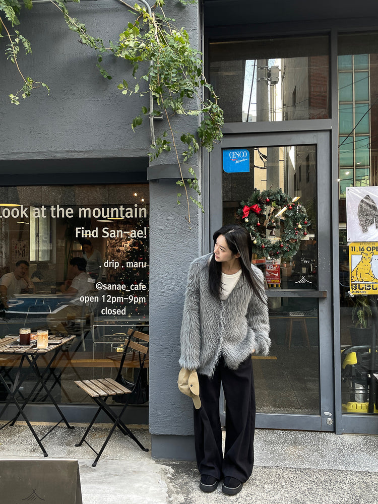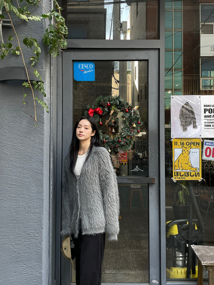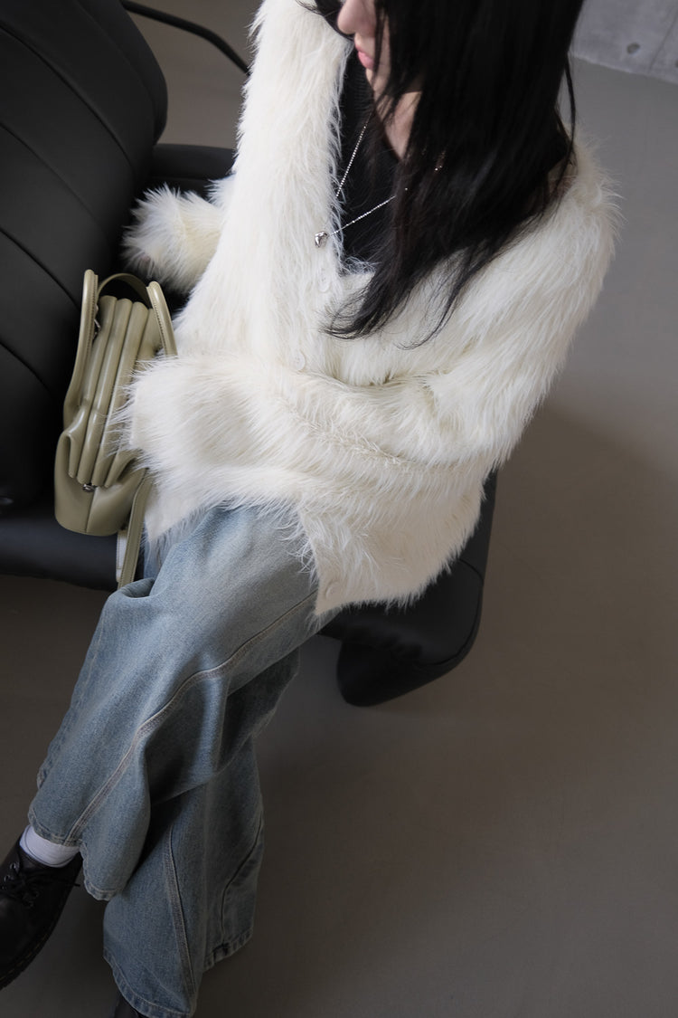 高質V領排鈕毛毛外套