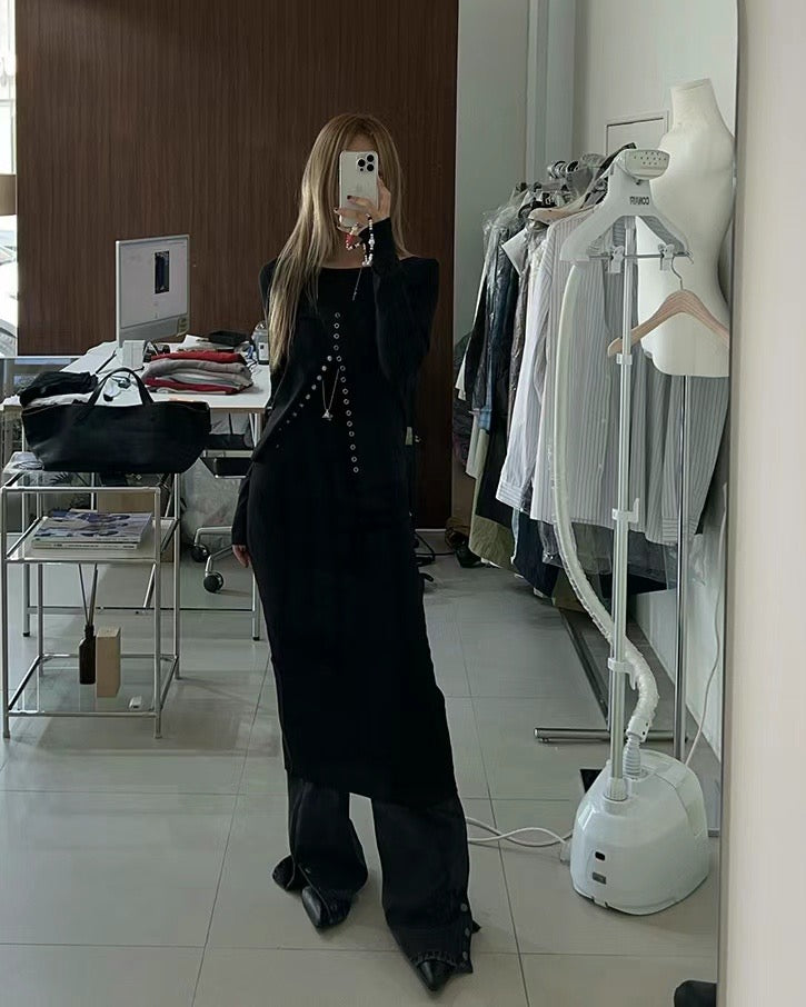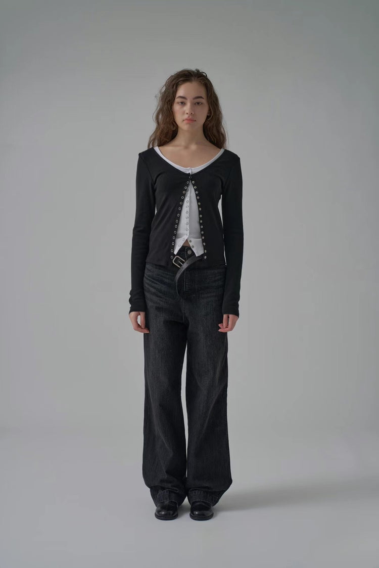 (現)U領暗扣修腰上衣