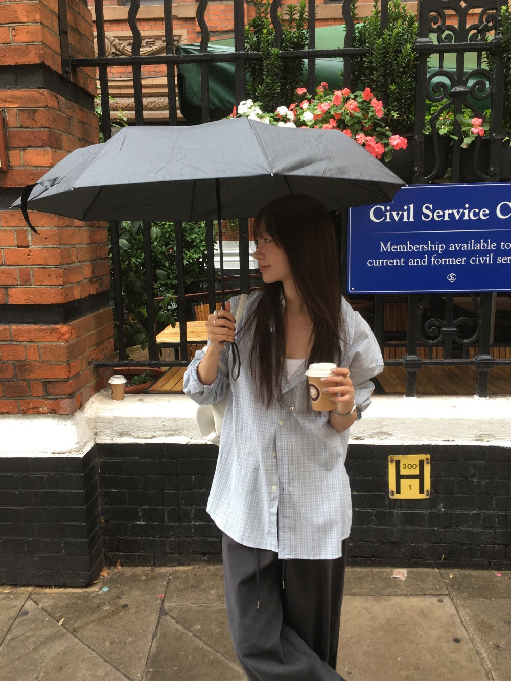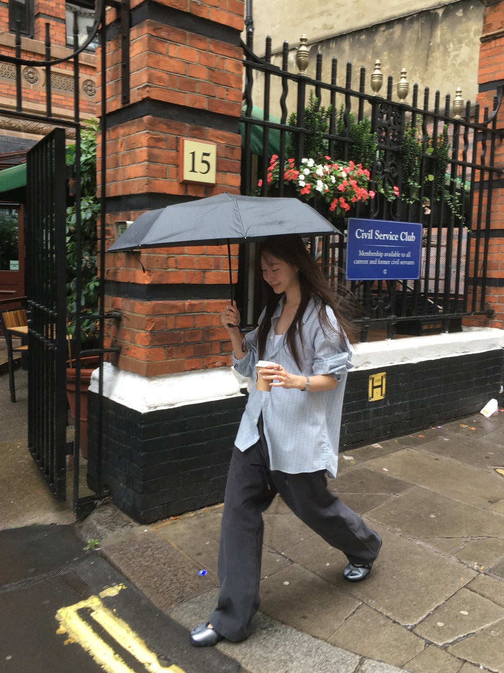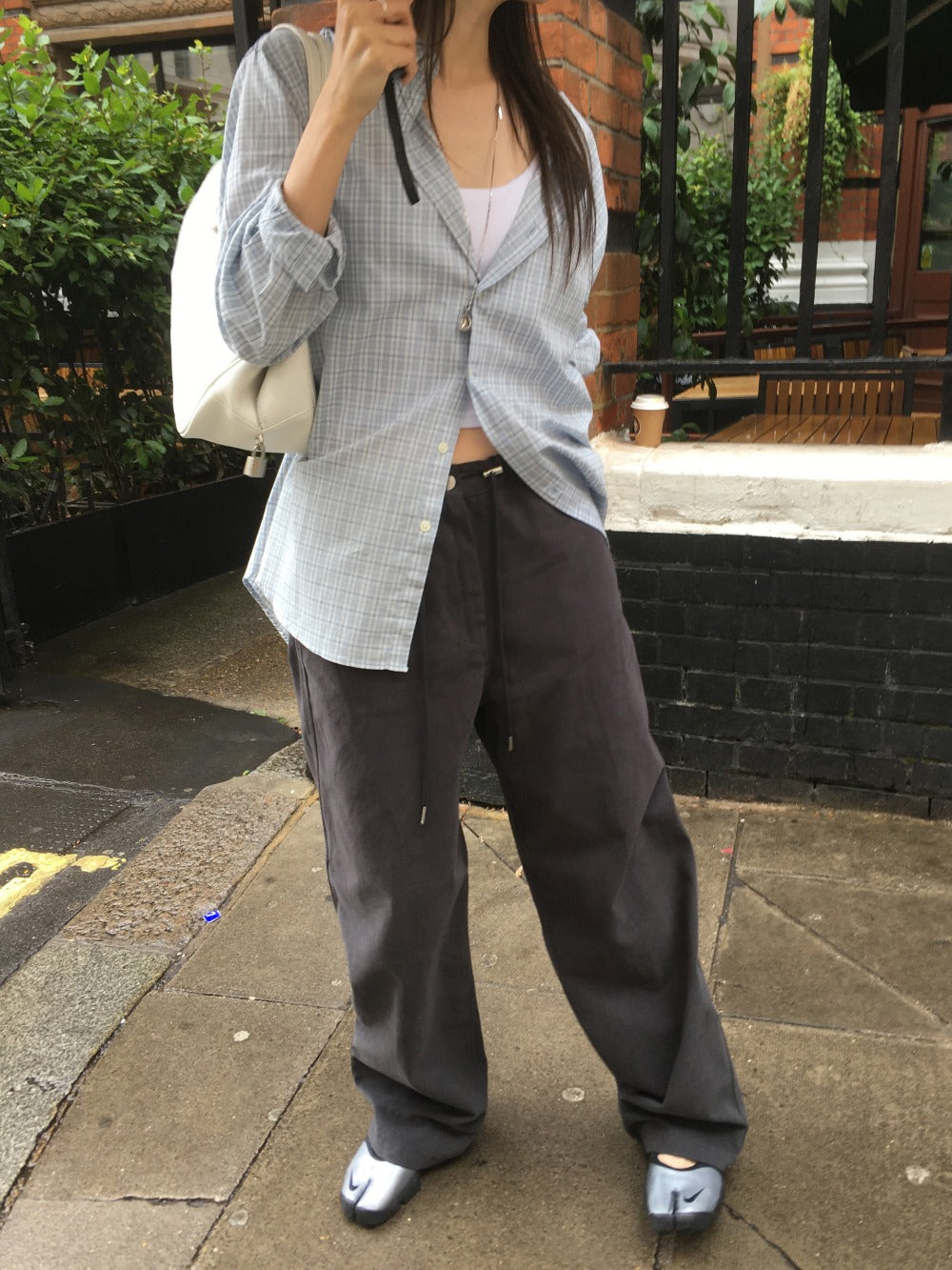 Unisex美色格紋寬鬆襯衫