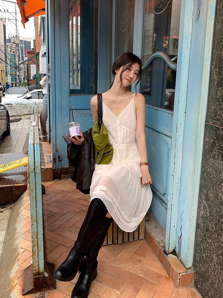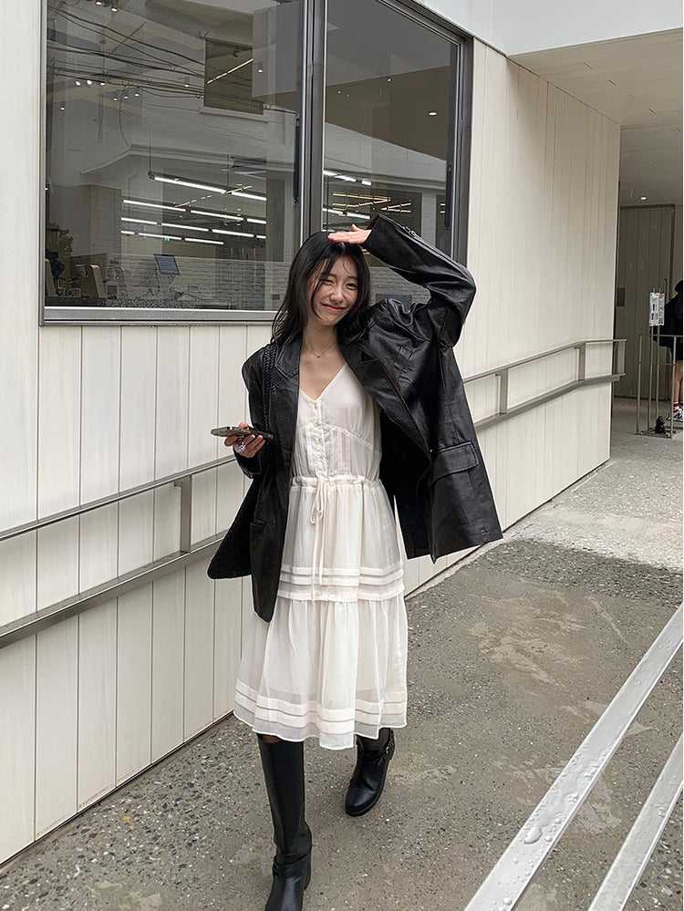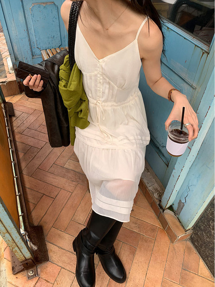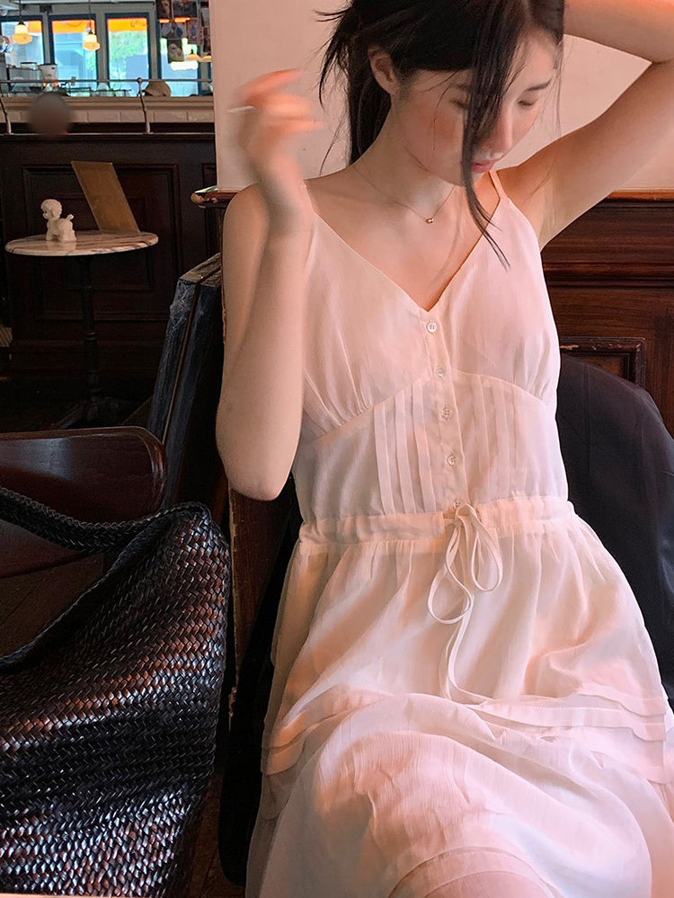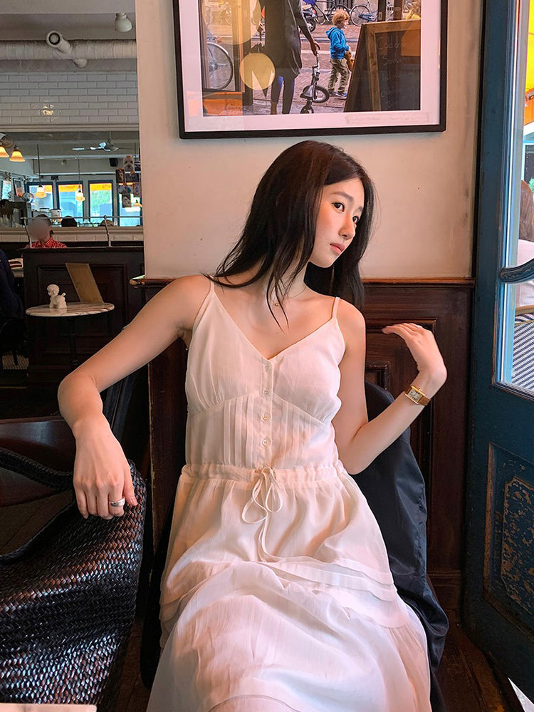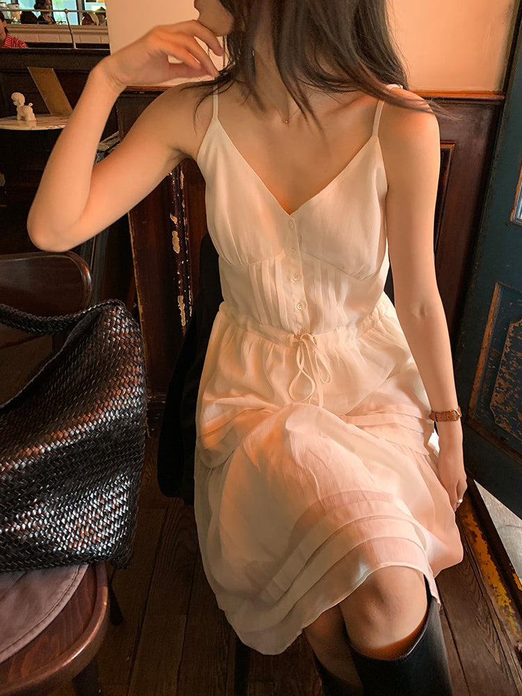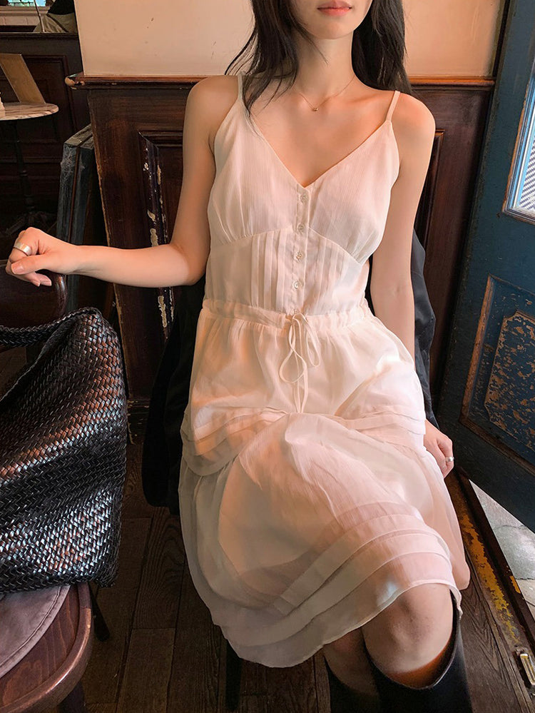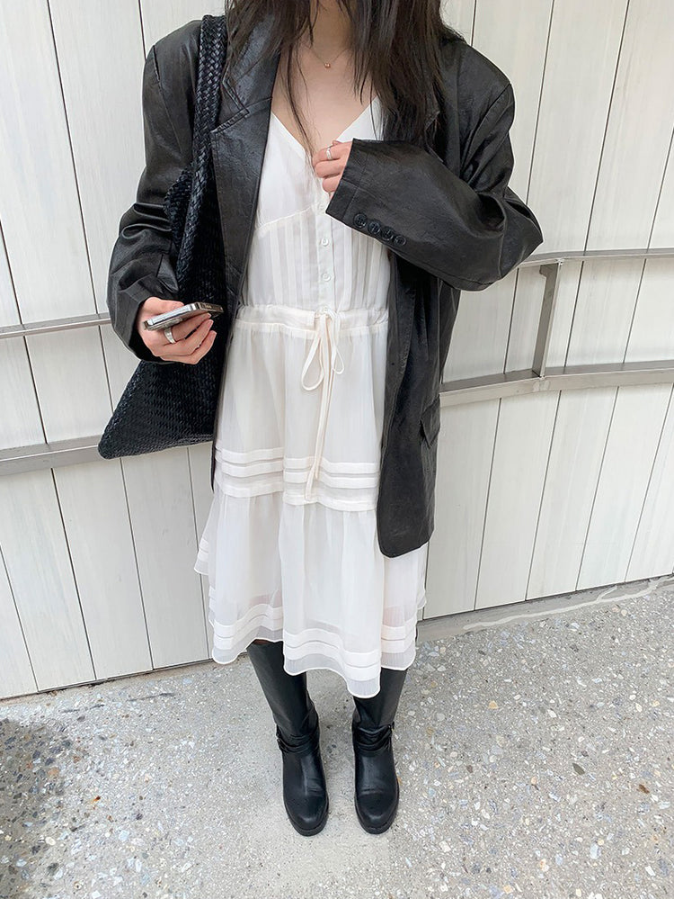 V領層次感排鈕修腰連身裙