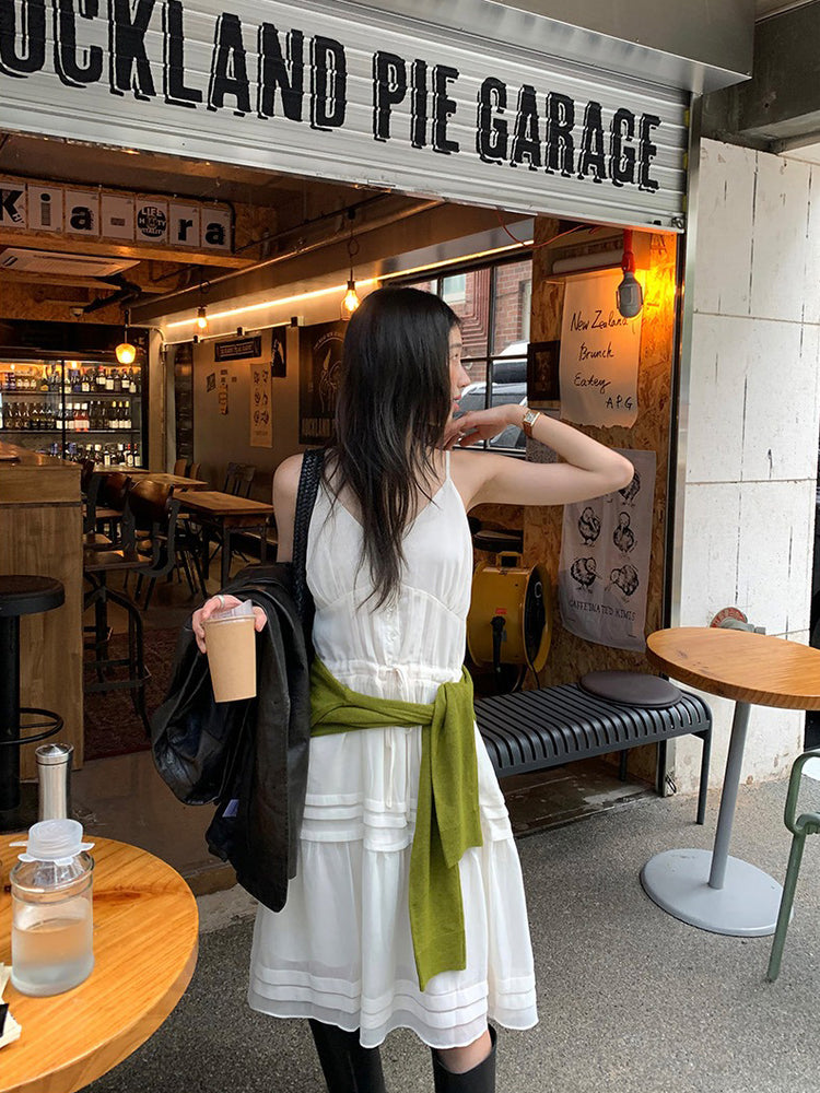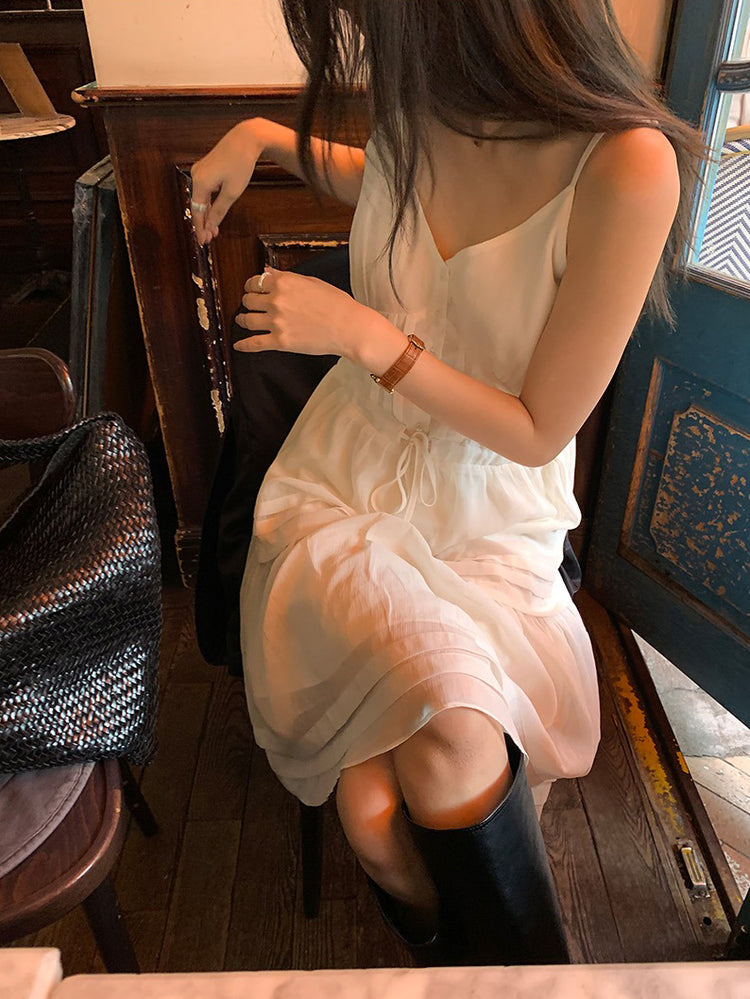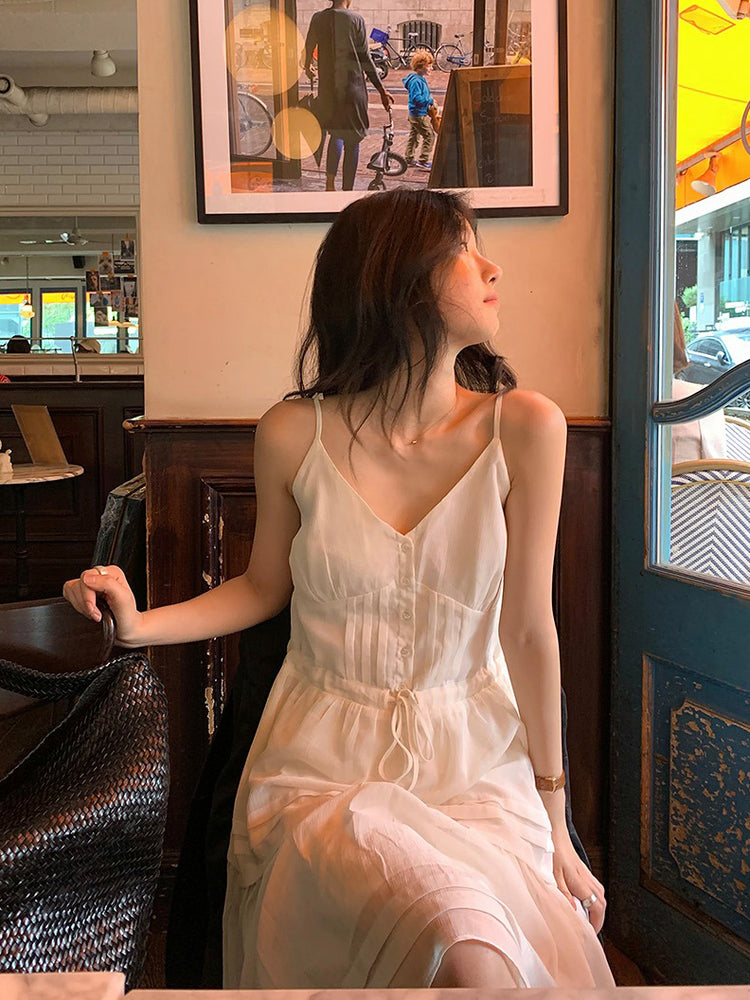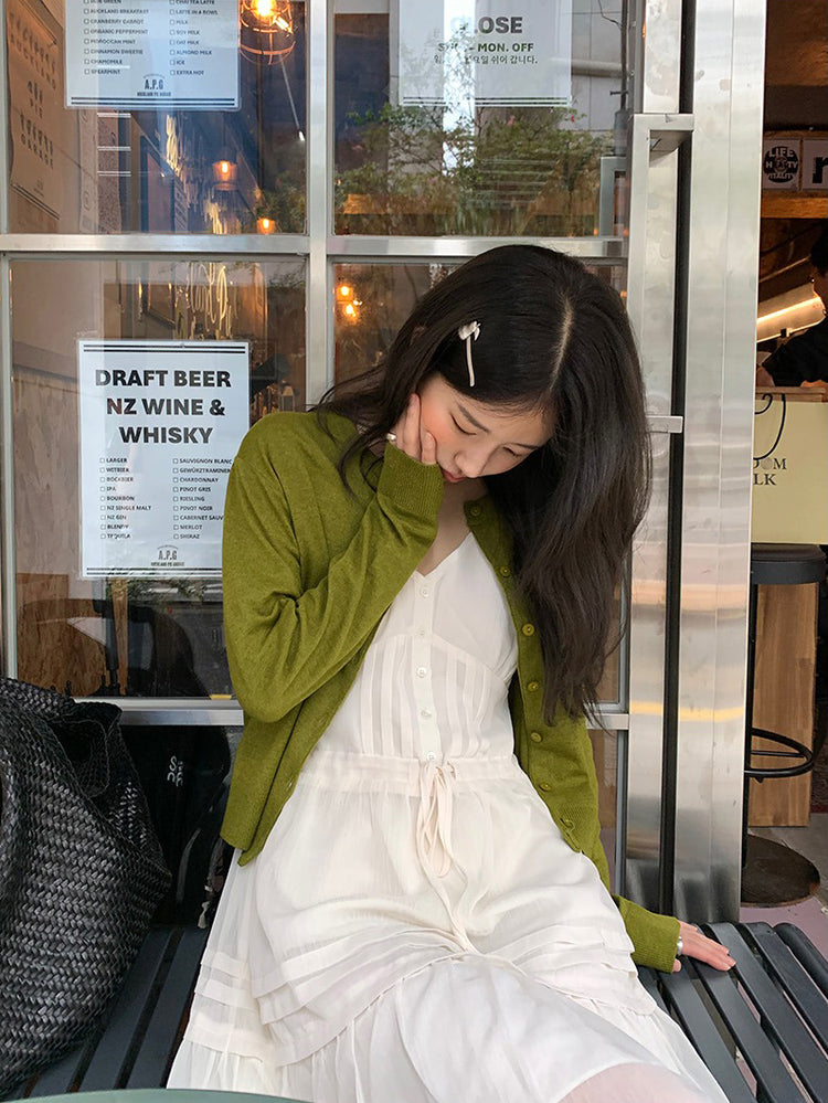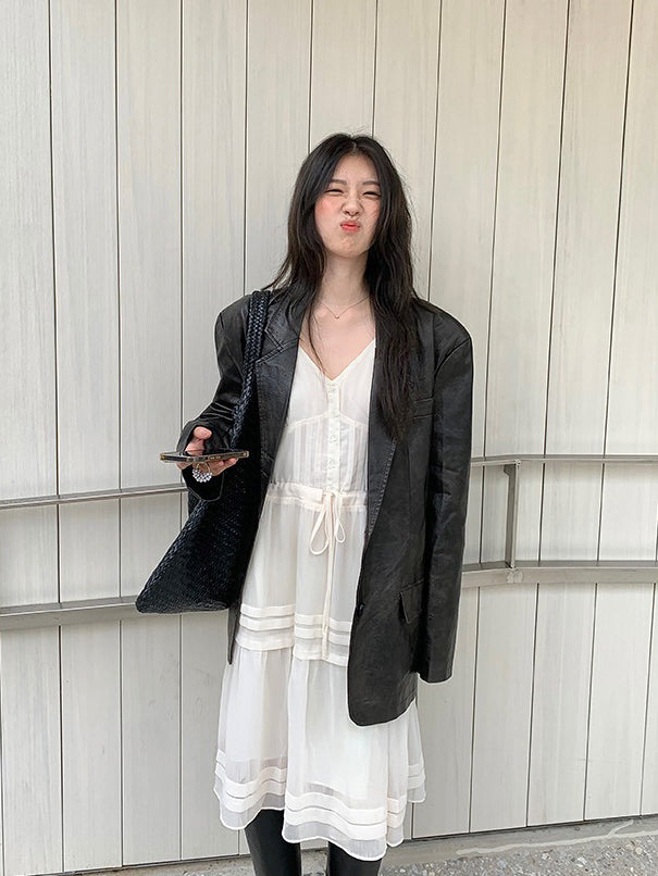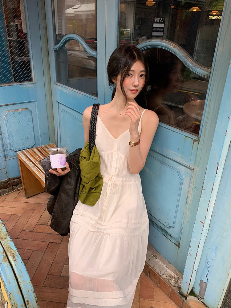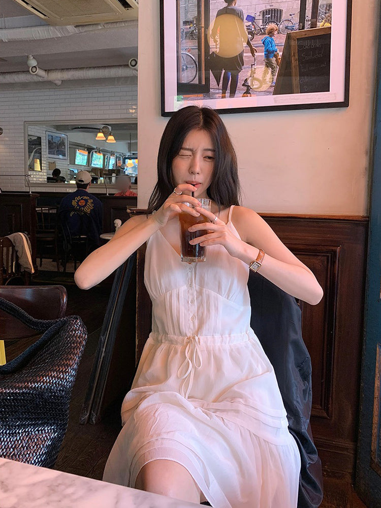 V領層次感排鈕修腰連身裙