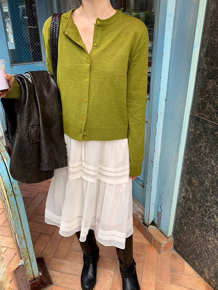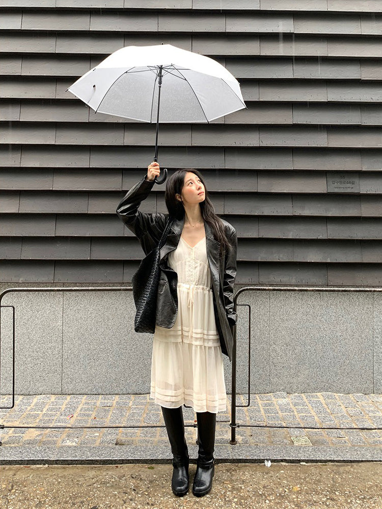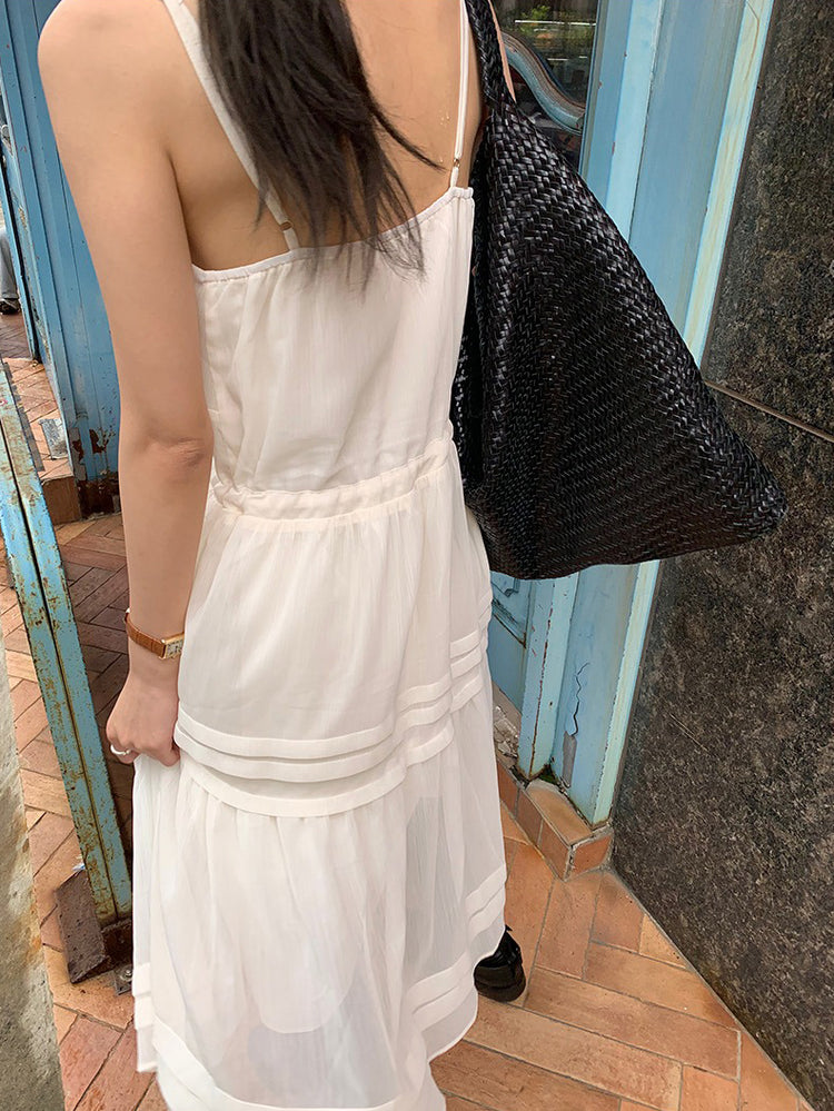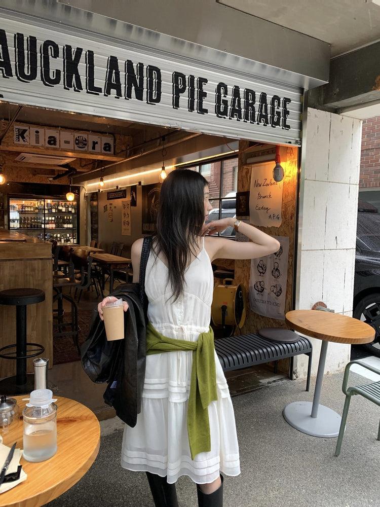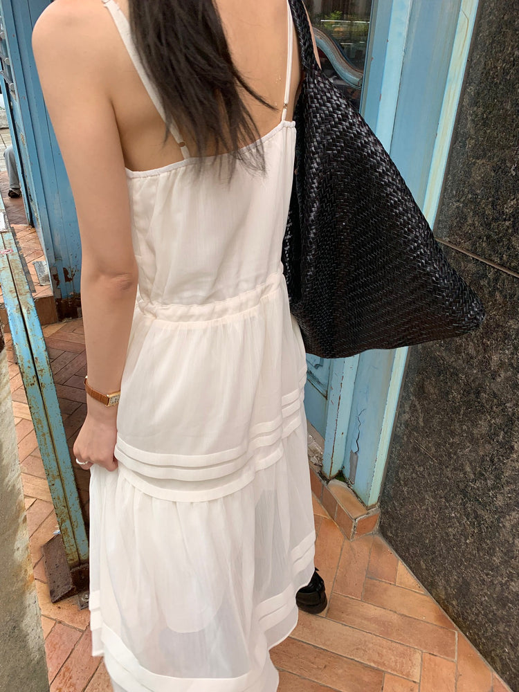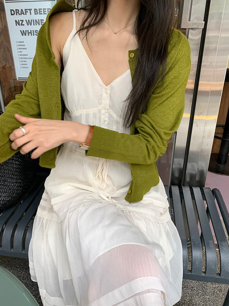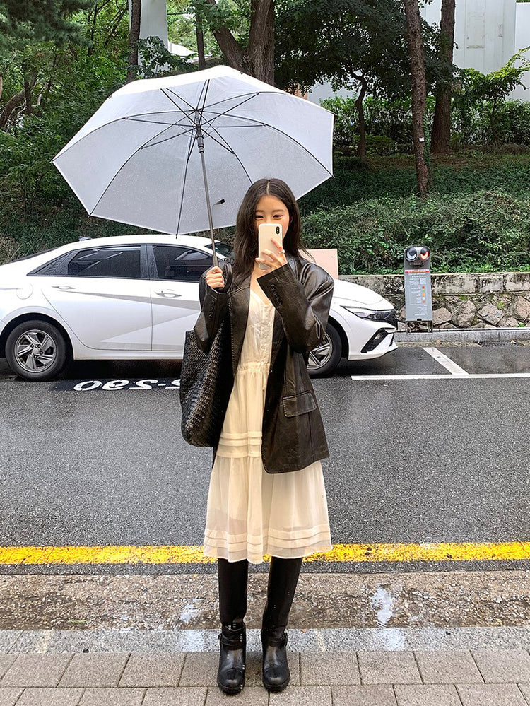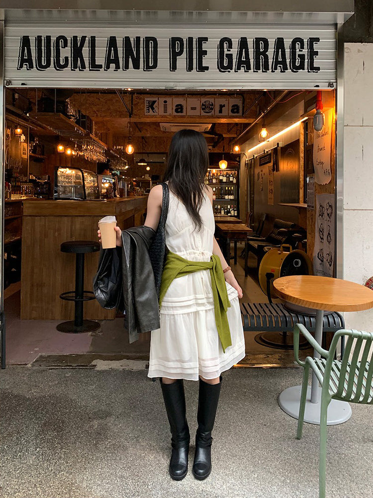 V領層次感排鈕修腰連身裙