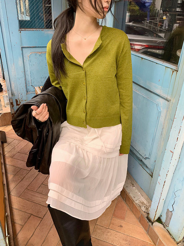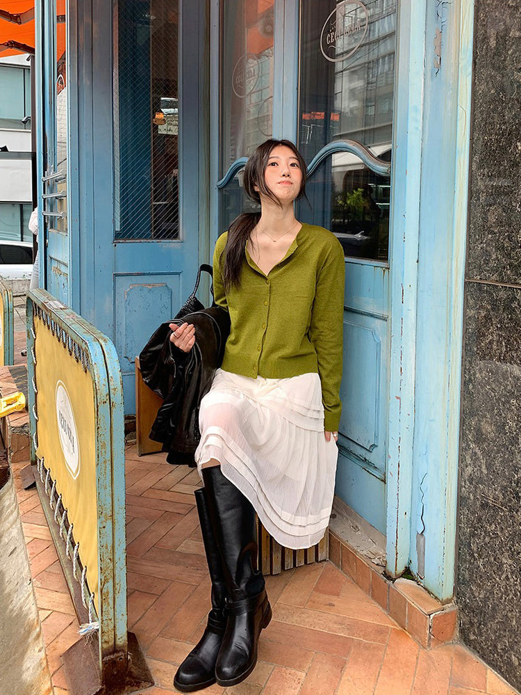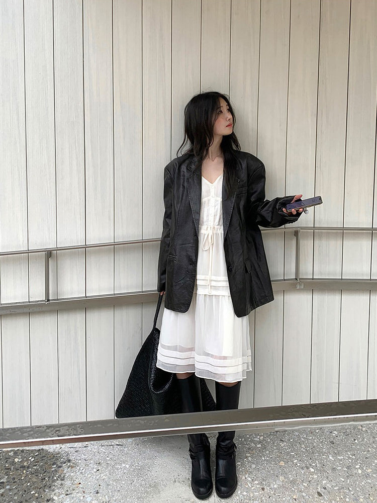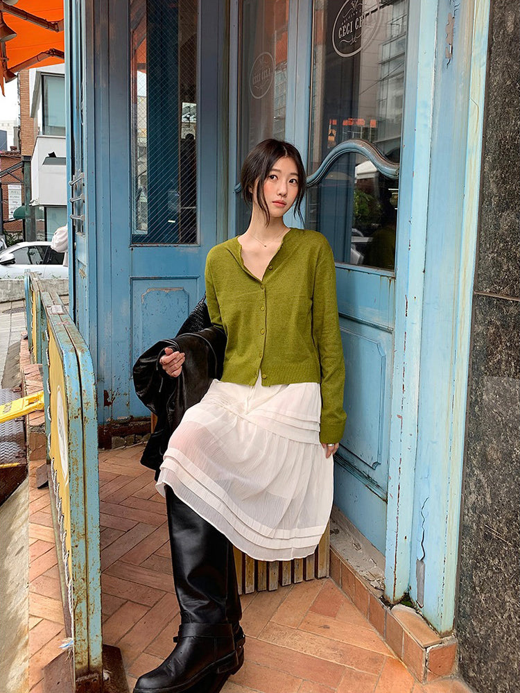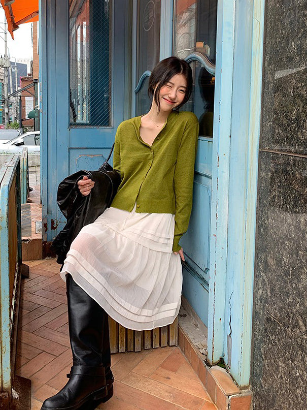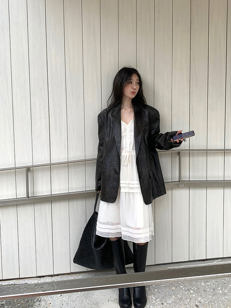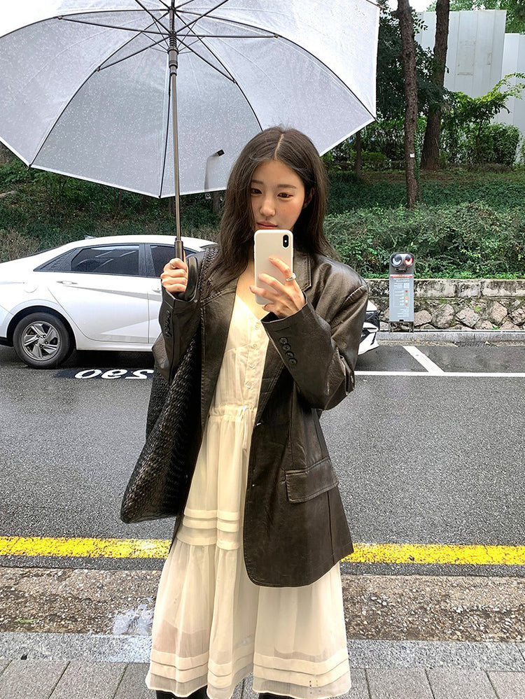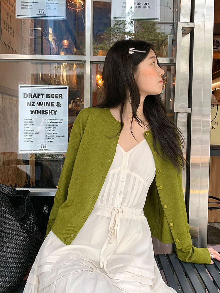 V領層次感排鈕修腰連身裙