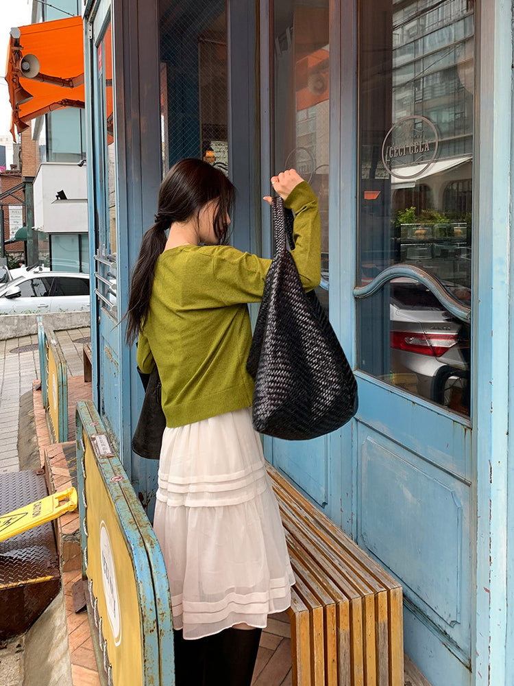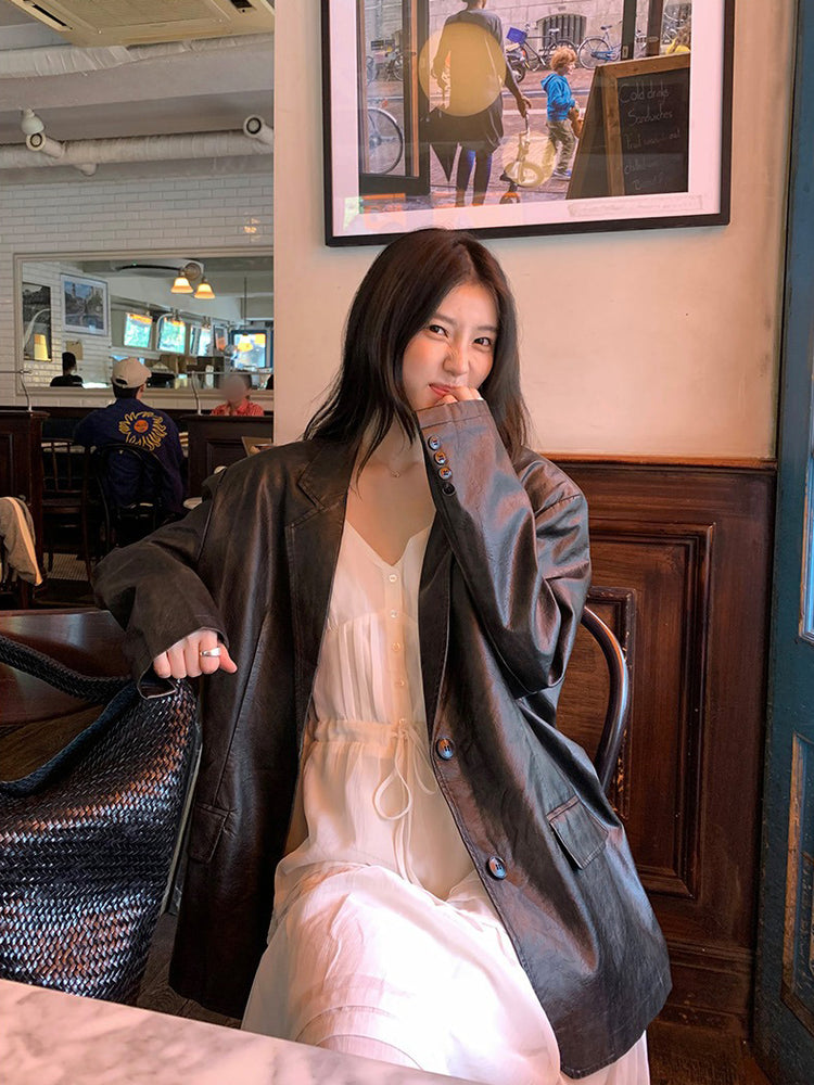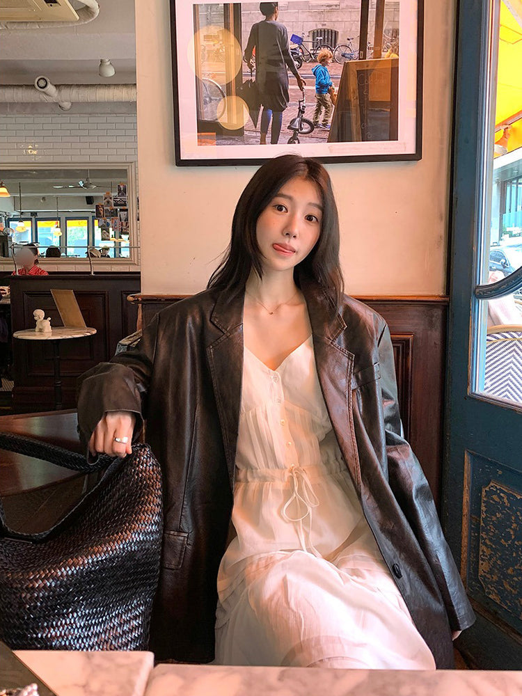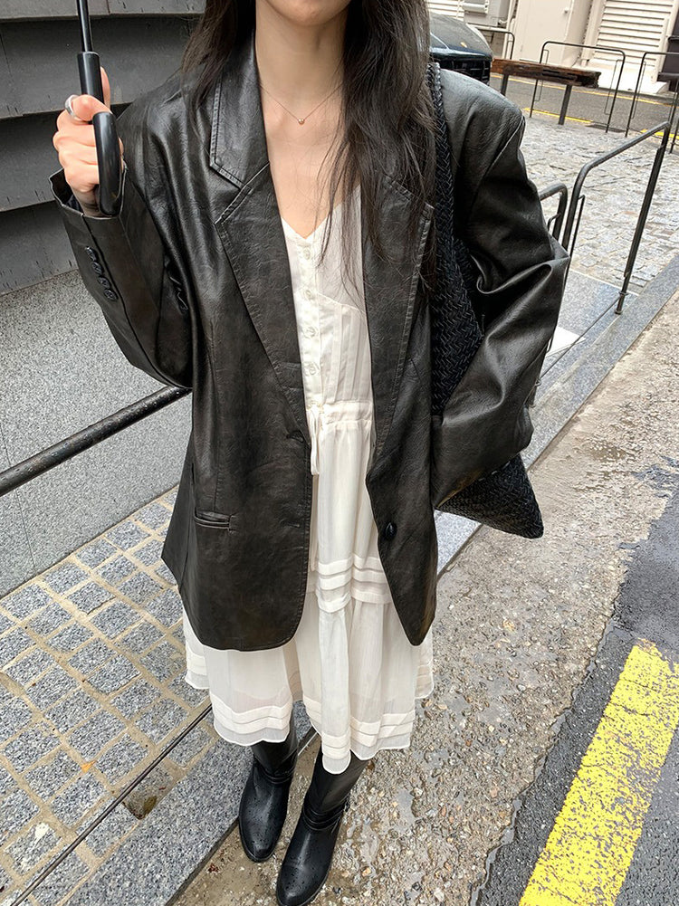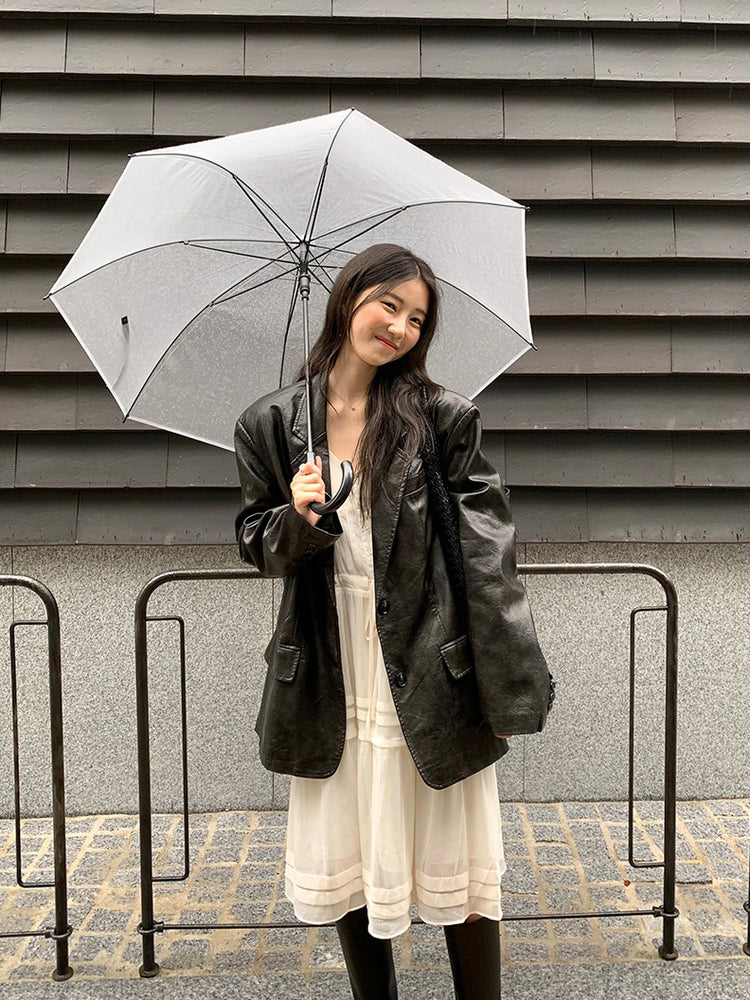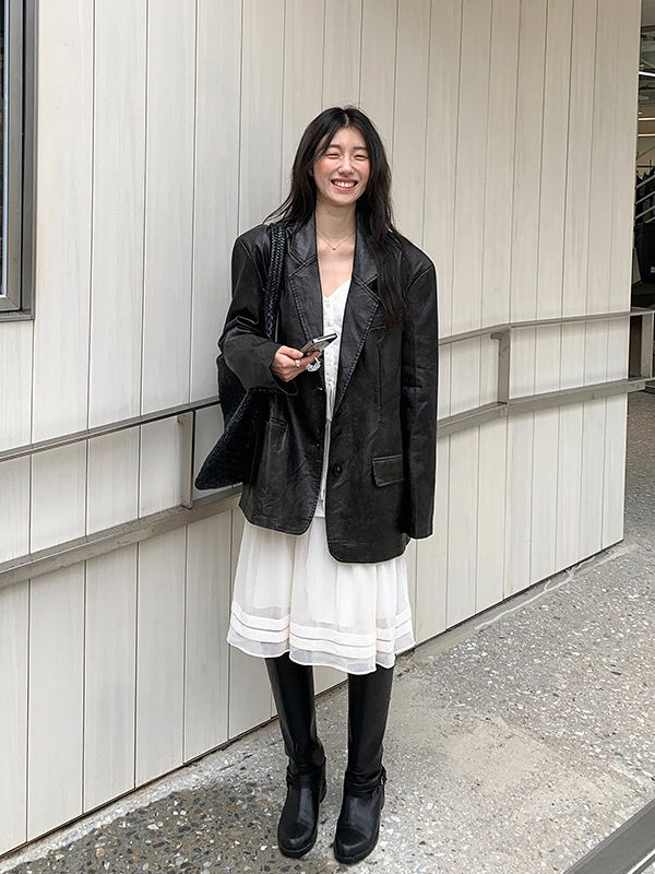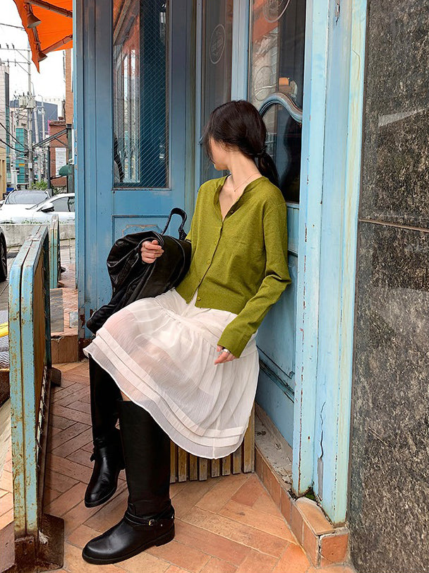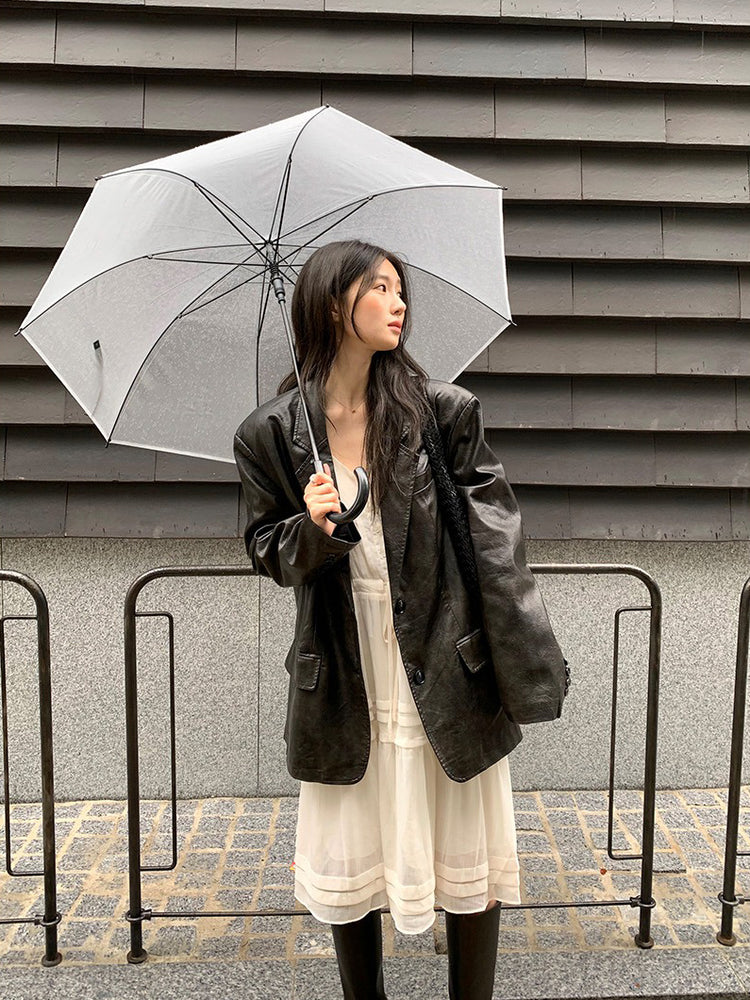 V領層次感排鈕修腰連身裙