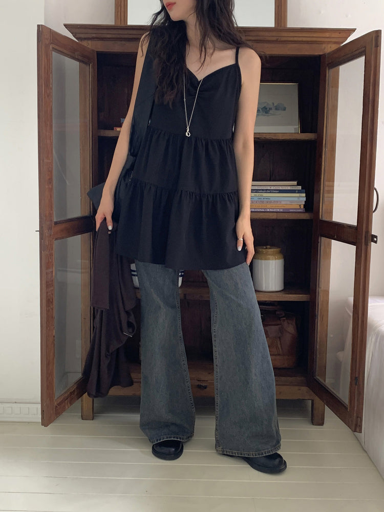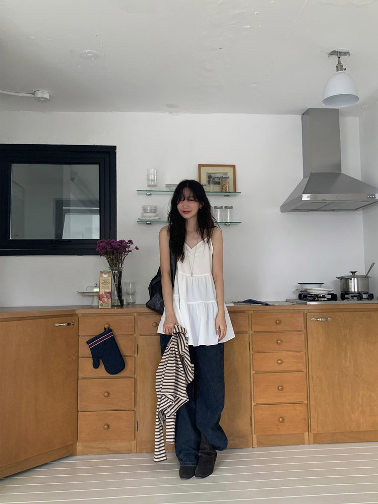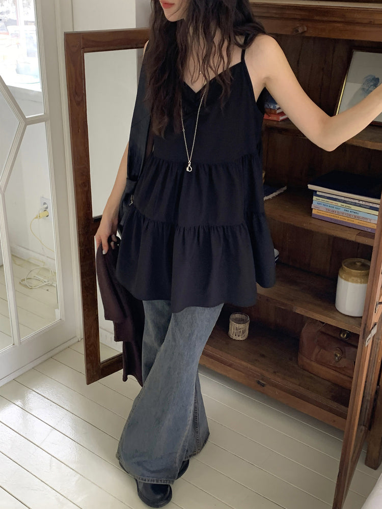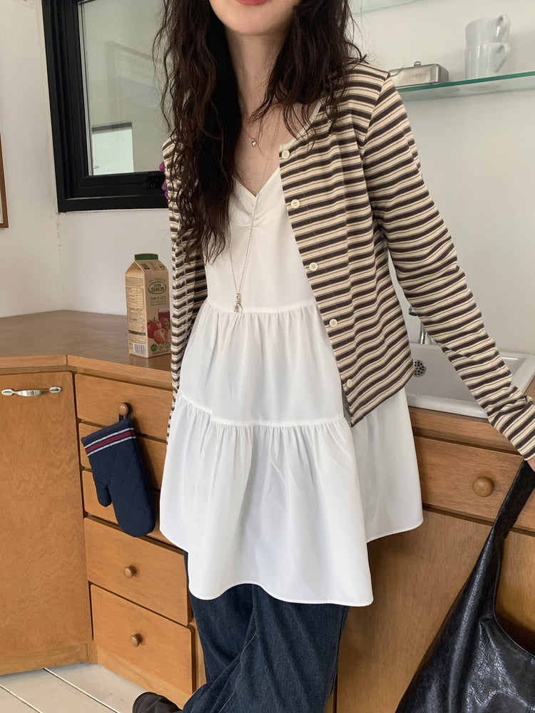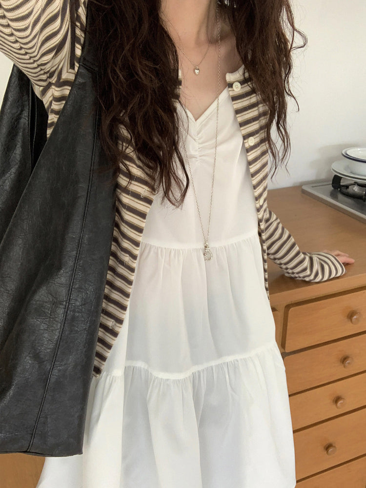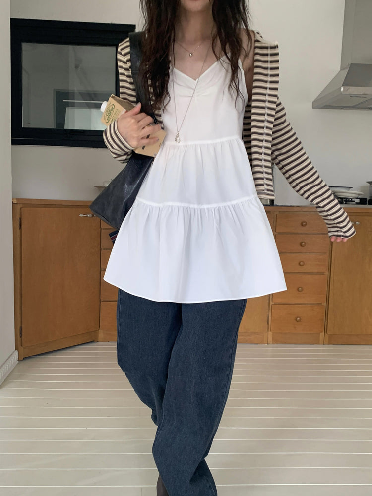 V領抽皺細節層次連身裙