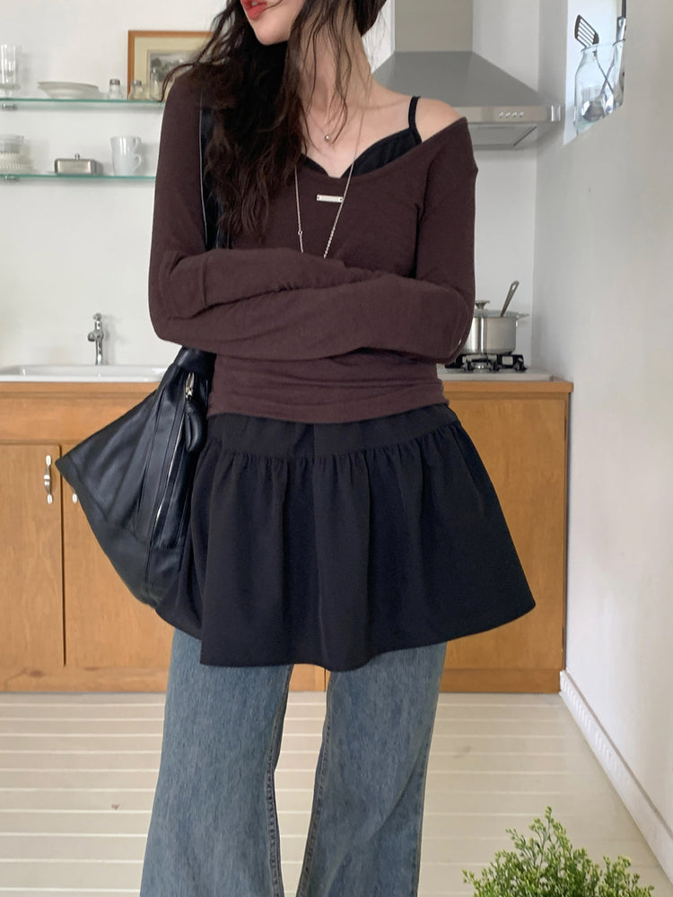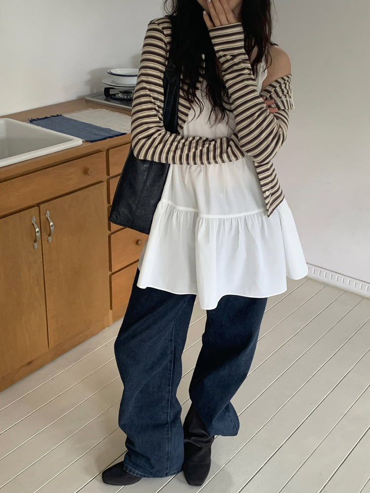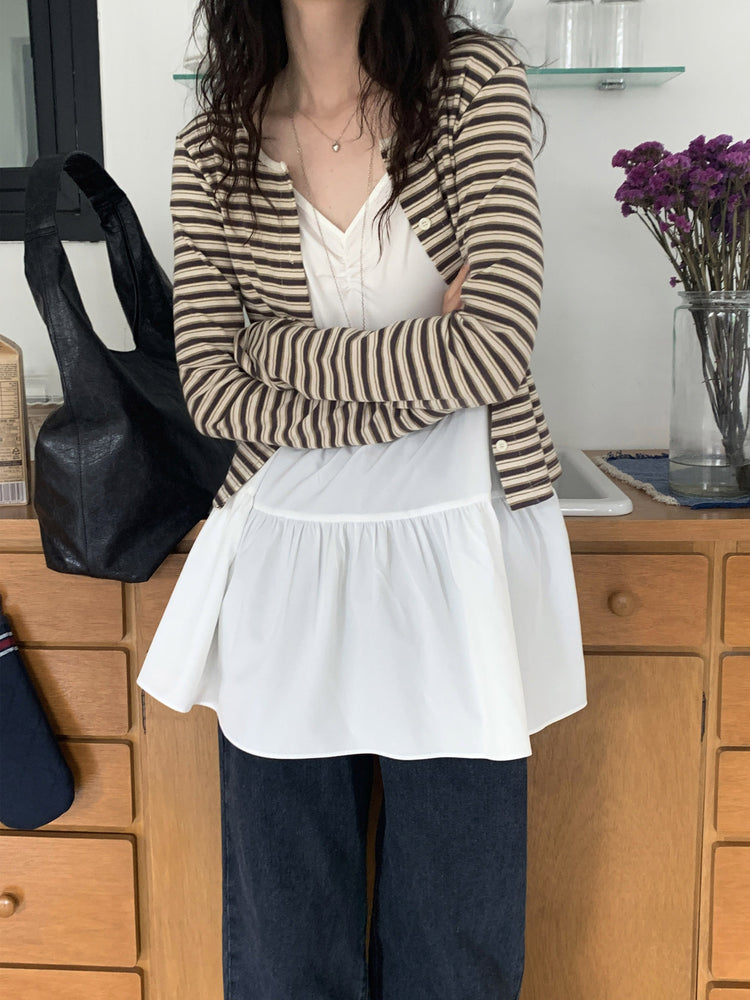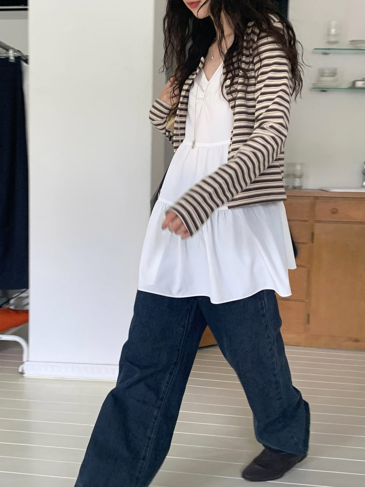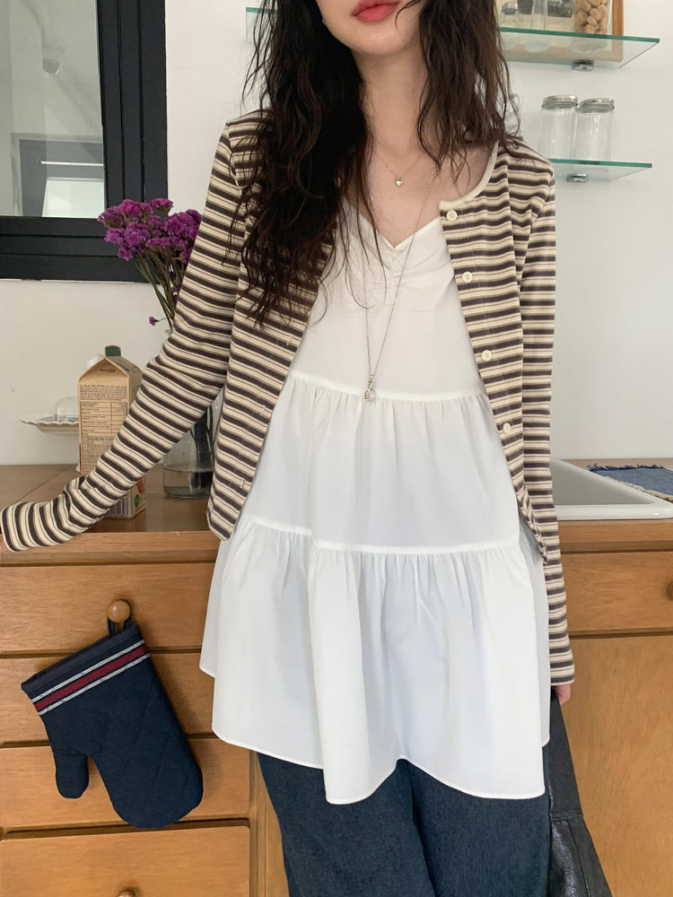 V領抽皺細節層次連身裙