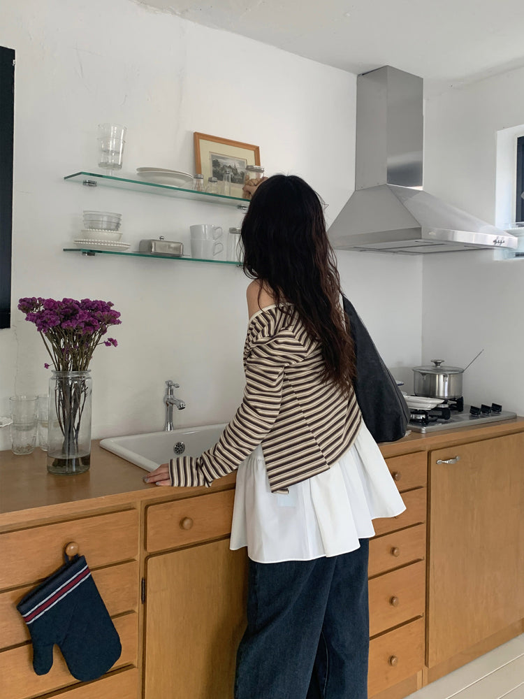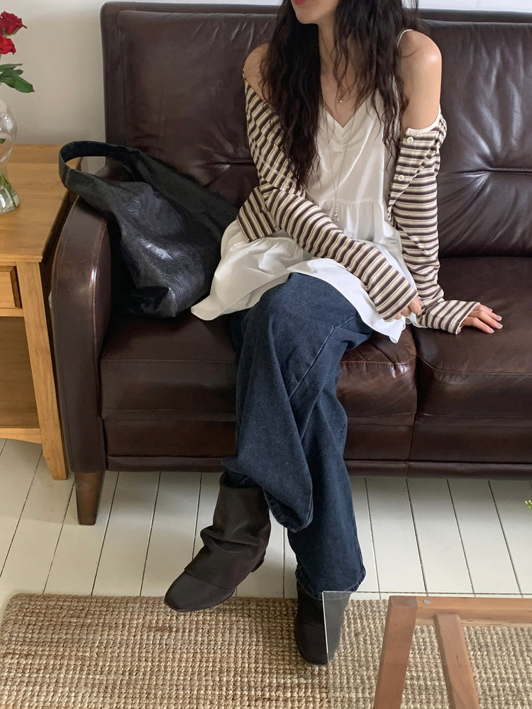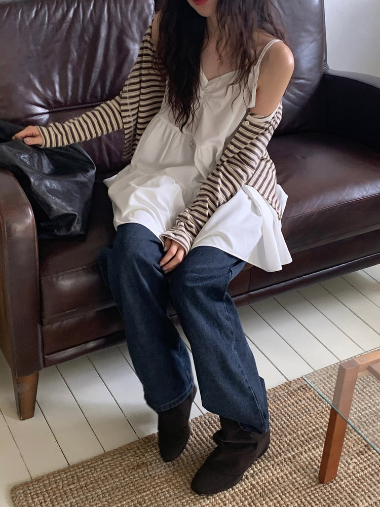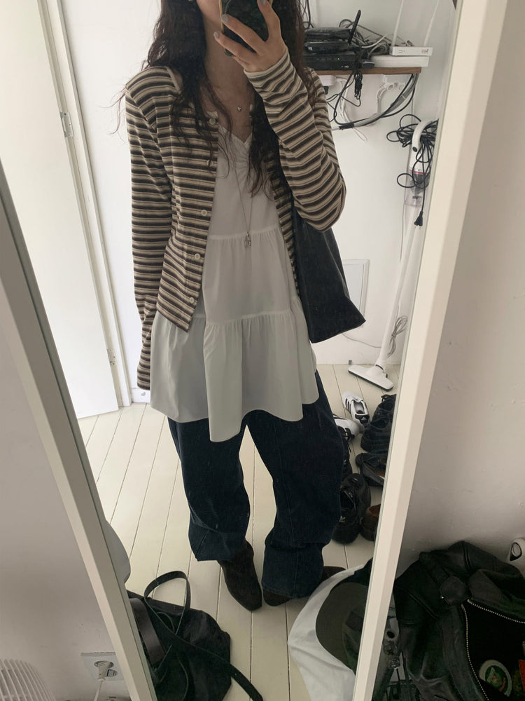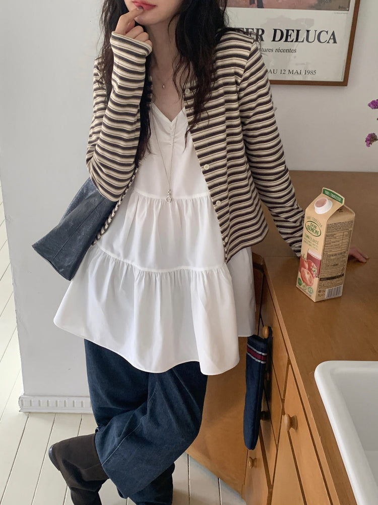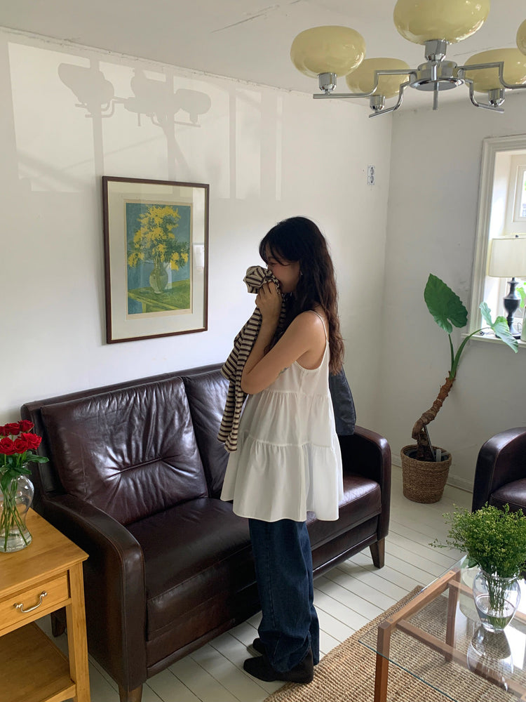 V領抽皺細節層次連身裙